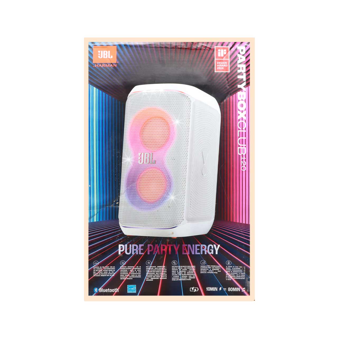 اسپیکر: نوع اتصال بی سیم و باسیم توان 160 وات رابط اتصال Bluetooth - AUX - USB - Mic نورپردازی RGB دارد وزن 10840 گرم منبع تغذیه برق - باتری ابعاد 30 * 56.8 * 29.5 سانتی متر عمر باتری 12 ساعت