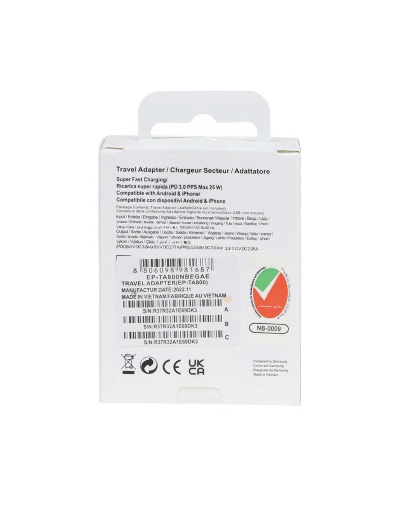 شارژر دیواری سه پین SAMSUNG 25W ch-hi+ TA800 ( فست و PD) مشکی DST ( شش ماهه شرکتی)