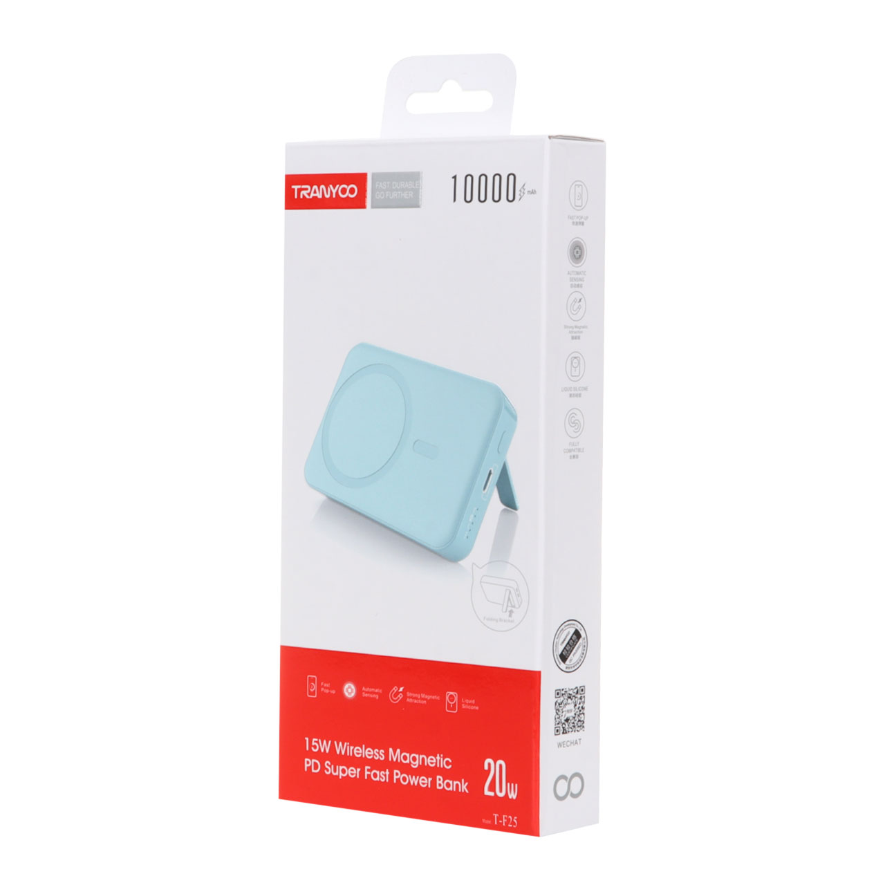 پاوربانک وایرلس (PD و فست شارژ) Tranyoo 20W 10000mAh مدل T-F25 - آبی (دارای استند موبایل) کد 1211516